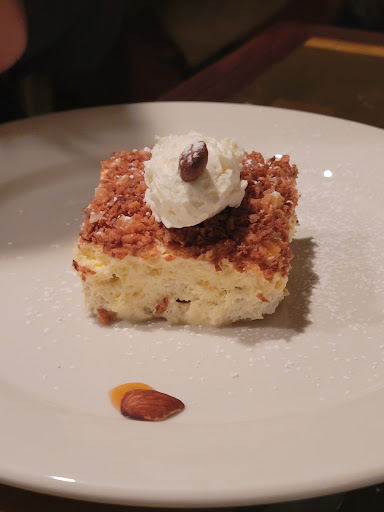 Great atmosphere, Food was outstanding, from appetizer thru desserts. Our waiter was friendly, knowledgeable and professional. Live music a nice plus, if at times, a bit too loud for comfortable conversation. Overall, great night and will definitely be returning.