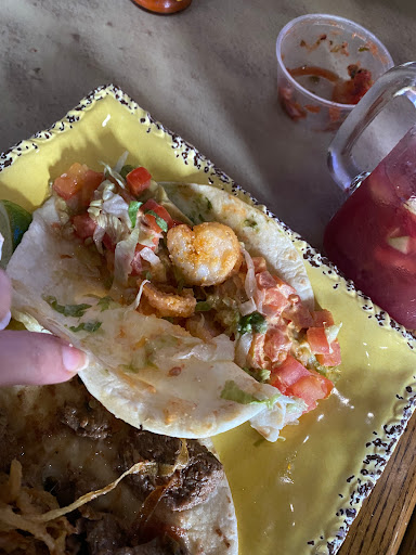 I read the reviews and felt this would be a fun place to try. It is Tex Mex. There is a special every night. Wednesday nights special is 8.95 for all fajitas. I was greeted as soon as I walked in the door. Nice touch. Then I sat down. The 20 year old waiter dressed in shorts and a t shirt asked if I wanted anything to drink. I replied, a water for now. He disappeared. Next came freshly made chips with very tasty salsa. I ordered the shrimp fajita. Before I could say that I did not want sour cream, but would like a side of guacamole and a sangria, the waiter was off and running. The fajita came with a large amount of shredded lettuce, two tablespoons of tomatoes, and 1 tablespoon of grated cheese. No rice or beans. That was a disappointment. I finally got the waiter to bring a glass of white peach sangria. The sangria was the best part of the meal. I would only go back here for drinks. The menu is written on the side of a mini surf board. It is uniquely decorated but there are better Tex Mex restaurants. The service was lacking. Although there was a table of 4, the diners at that table clearly knew the manager. They received great service. Too bad. Prices are moderate to expensive. The fajitas are usually 14.95. The drink was 7.95. Service was mediocre.