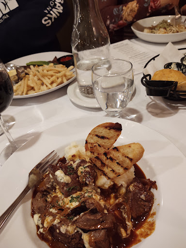 You walk in and notice that the restaurant is smaller, cosy, classy and clean. The classic music over the speakers helps add to the upscale ambiance. The lighting is slightly dimmed. Cloth tablecloths with paper over top so you dont feel like you have to eat with precision. The food is good. The serving staff is utterly fantastic. Look through the reviews, theres never any complaints about that. Some of the dinner prices can seemingly be a bit pricy for the area but for the most part everything is pretty reasonably priced. They serve beer and wine. Its no greasy spoon, its an excellent restaurant with a classic upscale feel.