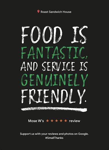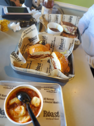 Tried roast on a busy Thursday around 1:30. Awesome service from the big guy up front. I ordered ahead and it was a quick 5 min wait and my good was whisked to me exactly as I ordered. The roasted turkey with avocado spread and chipotle mayo was seriously insane. Super juicy turkey with fresh Avocado/guacamole spread nice crisp green color. I had tomato and chipotle mayonnaise on side and tossed the tomato while dipping the sandwich in the Togo small dressing container. The bread was just perfect. Fluffy and soft with the perfect soft crust sourdough should have. No grease at all! Beet salad was fresh and lively. Roasted pear is unique and probably my favorite salad after trying these two only. This is my first visit. My girlfriend has been to roast at least ten times and the beet salad is in her top three. Her office orders Lucy from here and they are all impressed. Clean establishment and the prices are reasonable. The sandwiches are huge - equivalent in price and size to a normal Long Island deli sandwich. However, at roast at least I know the ingredients are sourced from well minded suppliers. Completely satisfied - definitely would buy again....