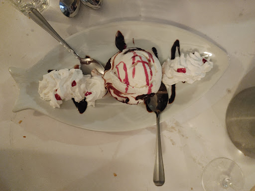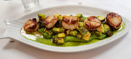 Waiter was great, patient, very helpful. Had a nice, long dinner and no one rushed us. Gets loud when crowded. Marlin special was excellent. Manhattan Clam Chowder not so much. Good calamari and cream cakes.