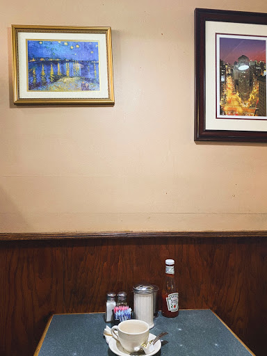 I went here for breakfast. I had waffles with fruit salad and coffee. The waffles were well cooked. The fruit salad was fresh and sweet. My friend ordered the farmer omelette with ham, bacon, tomato, and onions; with potatoes and rye toast. It was really good. the omelette was light and fluffy. The filling was fully cooked, the bacon was very crisp. The service was really good. My coffee cup was always full. Prices are reasonable. Parking is difficult but it was early in the morning. Not too bad.