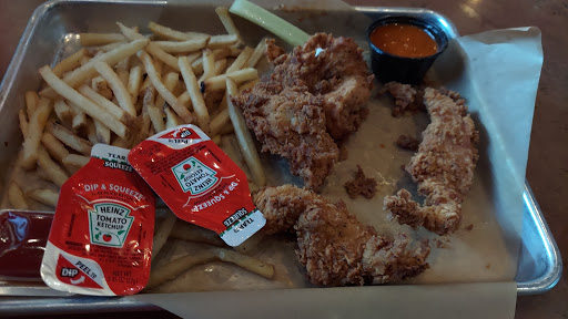 This is a nice bar if youre into wings and beer. Theres television screens plastered all over the place and always tuned to sports games. Its open with high ceilings so it never gets too loud. Ive been there a few times now and theyve occasionally mixed up my order. I dont consider that to be terrible at a bar, but others may have less tolerance.