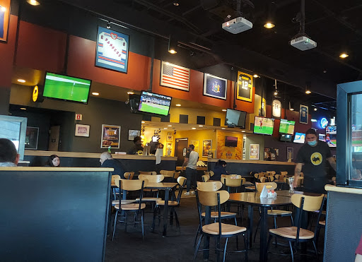 Food was terrible - service poor. Build your own burger .. thin flat and dry.. served mayo in a package ? and sweetened iced tea was really poor tasting, Wendys a much better burger. Wings were ok - but general tso chicken at any Chinese food take out is better tasting. Suggest you watch sports on your smart phone and enjoy a better experience somewhere else. BTW.. Hand towels in the bathroom would be much better than the high speed dryers that no one tends to use.. and those no water flush urinals whew.. make the bathroom stink .. come on folks this is a restaurant not a stadium.