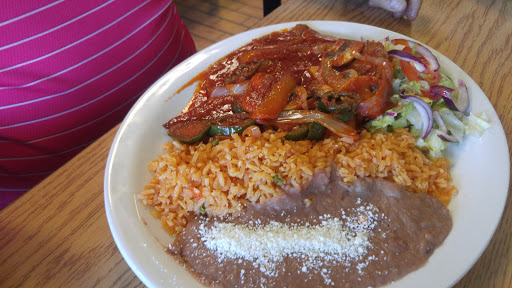 Dont judge the food by the looks of the building. Worn out building housing Indian, Chinese and this Mexican fare restaurant disguises the really good food inside. We really enjoy food that doesnt have a institutional bent to it and were glad that we stopped here. I had the chimichanga platter and my gf had the poblano stuffed with cheese (no meat, thats the way). The rice was great and the refried beans were weak and too small a portion...but all in all Id give the owner (served us) and the food a 4 out of five. Old Mexican westerns played in Spanish with a Latino juke box nearby. A lot of Latino locals were there..another great sign. We have to go back again for the in-house flan.