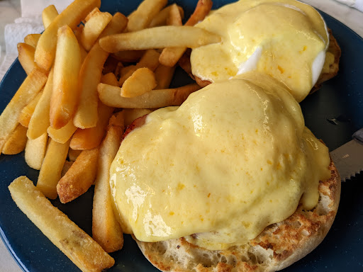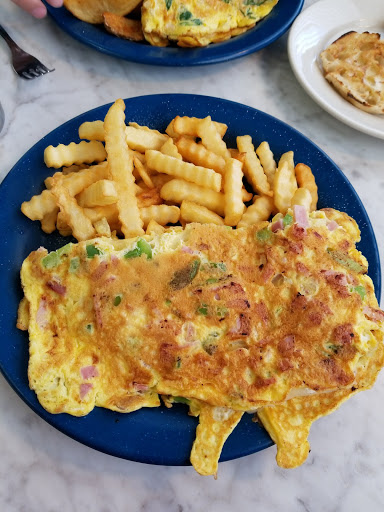Went here with a friend for a quick lunch, and was impressed with the food and the service. I got the Monte Cristo sandwich, and it was great! You cant go wrong with turkey and ham sandwiched between two pieces of french toast. The fries that came with it were good, too. Crispy and dry, the way anything deep fried is meant to be. As to the decor: it looked like a typical diner, but it was very clean and nothing looked worn. The booth seats were comfortable, and the staff seemed able to handle a large lunch crowd. In total, it took us an hour to eat, from arriving in the parking lot to paying the check.