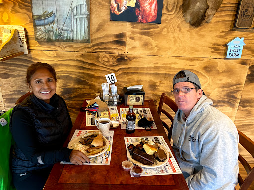 Excellent BBQ food and authentic pizza selection. Pulled pork , pulled duck, and rabbit pizza are just a few. The restaurant has a rustic charm with a family atmosphere. The prices are fair and potions are generous We absolutely loved our server.
