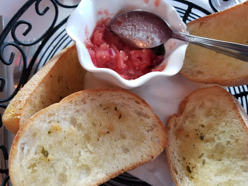 Stay away from the bench seats! The most uncomfortable seat Ive ever sat in at a restaurant. French onion soup was disgusting and my steak was very overcooked and chewy. Very good bread. Very slow service but they had a party of 30 and kept reminding us of it- so hard to tell what a normal wait was. I wouldnt go back.