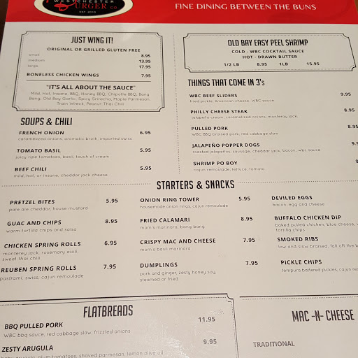 The WBC, true to their name sake, makes incredible burgers. They also have a wonderful draft beer selection, and a great bartender. The environment is modern and clean, with comforting wood tones and accents. The service is usually very good. I took one star off because of the constantly pervasive smell of the commercial cleaning products they use. It smells like a hotel. My wife and I hate it, and will avoid eating there many times due to the headaches she gets smelling those awful chemicals. You can, however, get a drink and sit outside at a picnic table on their front patio. Thats our favorite thing to do there.