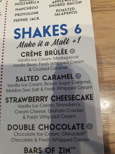 First time at ZinBurger last night! The manager, Steve, was so nice, knowledgeable, and accommodating. Our waitress, whos name I dont remember was also lovely! I ordered the big blue burger, and the chopped wedge salad it was awesome. My boyfriend got the Zin burger out of Stevss recommendation, and the truffle fries, I really loved that one so we switched! Didnt live our wine selection so we said something... And we were able to take it home in a sealed bag with receipt to give to my mom lol. Great experience, we will be back.