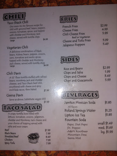 Love this place. My wife and I stumbled upon the Shack when we pulled off 87 to find some fast food during a drive from VT to NJ. The burritos are enormous, prices are decent, and most importantly they taste awesome. I got a shredded beef burrito and it had to have been at least half meat. We frequently drive back and forth between NJ and VT to visit family, now we make sure to stop here every time. The beer shop next door has an awesome selection, so you can pick up some bottles while you wait for your food.