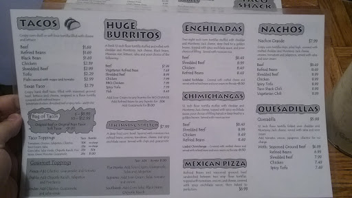 Eaten here a number of times and the food is usually quite delicious. It is a quaint atmosphere and the name reads taco SHACK and that is precisely what it is. Not much seating on the inside but all the tacos are really good, particularly the fish tacos.