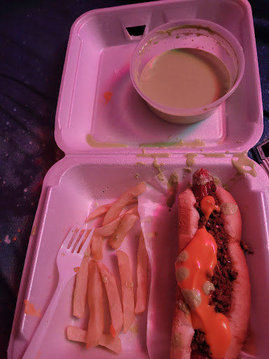 Great food good price I Tried the chicken with rice and salad very good the chili dogs are good too nice place order or eat .