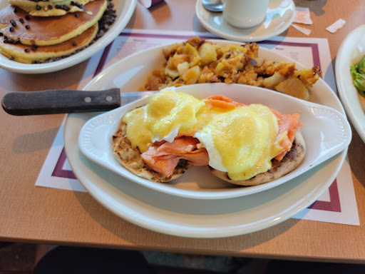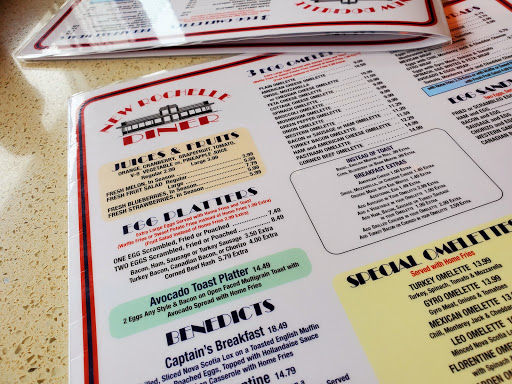 New Rochelle Diner is a comfortable place to sit down and eat any meal because its roomy and clean, the staff are very friendly and most importantly professional. Weve only been here for breakfast but we enjoy it. My husband doesnt like the rolls but eggs over medium are usually cooked right when you get bacon make sure you let them know you like bacon well but cooked on grill not thrown in the oil. Most diners usually throw bacon in oil instead of cooking it nicely on the grill. Not saying that they do it but its just habit now. The eggs California was good and eggs Benedict but I got it with regular bacon instead of Canadian bacon. For some reason the English muffins have a slightly bitter taste each time Ive gotten it. Thats why only 3 stars.