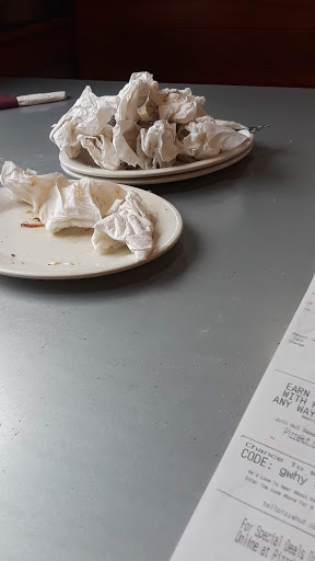 i have never in my life been so turned off to food! worst pizza hut ever! the only reason my husband and i did not leave is because of the waitress. a young girl who was working her but off while no one else was working. that poor child. good luck to her. the chicken wings had no chicken, the pizza was not pizza, it was just gross. i wished there were a dominoes pizza nearby. the most bootleg desert: breadsticks covered in chocolate... disgusting!!!! i dont even wanna give it a star but google says i have to