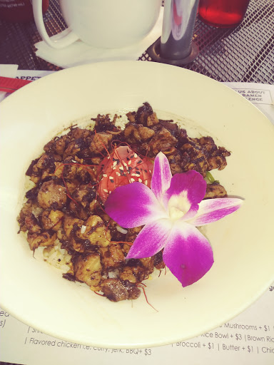 The food and staff are great! I had the Jerk Ramen (highly recommended) and the iced tea. ALSO, it was pouring rain and I was in my work suit with no umbrella. The owner actually gave me a spare poncho so I could get to my car. Talk about customer service! I dont live nearly but Ill be eating here again any time Im in the area. I saw a review that said theyre cash only but that has since changed. Credit/debit cards are now accept. Enjoy!
