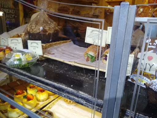 Maybe I did it wrong. I walked in to the dining area at noon, and immediately the atmosphere made be feel at home. I reminisced on the highly experienced staff and high quality food at Eastern Standard in Boston. Id come for carry-out. I was promptly directed to the bakery entrance next door. The bakery is beautiful. Gorgeous loaves of high quality bread and a beautiful interior. The service was quick to take my order. But then it started falling apart. The staff wasnt sure whether they had the sandwich I ordered "available." From a list of 6 sandwiches. So I ordered another to save time. And it hit me: these are pre-made, pre-packaged sandwiches. The dreams of delicatessen on divine slices of fresh Parisian bread faded. And then, confirmation: plastic wrapped, taped up, slightly stale, slightly soggy, cheap grocery store Ciabatta, with dried out nuggets of chicken breast. Well, at least the semi-caramelized onions were tasty. And Id ordered a slice of cheese cake, too. I was excited about this, because it came in a nice looking 3 by 5 inch box. Inside, I found a round mini-cake, with a mediocre glazed strawberry. It was just passable in flavor. Texture ok if you like fluffy cheesecake. For $6. I was disappointed enough to write about it. Walking by daily, beckoned by the inviting loaves of bread and warmness emanating from within, I thought Id found the place to fill the hole in my heart left when I moved away from E.S. Im still looking.