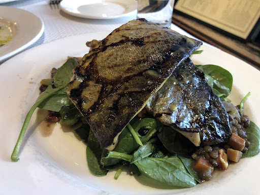This place is HUGE! It kind of reminds me of Bouchon here in Napa/Vegas where its a nice restaurant but not intimate.. even the interior sort of reminded me of Bouchon.. kinda dark, European feeling with chalkboard specials and paper setting. As I took a moment to gather my surroundings, I just noticed how LOUD it was. Its literally like youre in Grand Central Terminal, maybe because the high ceilings amplify the sound.. so if you want a super intimate date, go elsewhere. We were seated literally inches away from two tables.. so close, I even felt bad to use the bathroom because we would have to move our tables! Awkkkkkkkkkward. HOWEVER, the service is impeccable and the food is amazing! I would definitely return to try more things on the menu =) - FRENCH ONION SOUP -- YUM, the best Ive had. SO cheeeeeeeeeeeesy (yusss), and the onion soup was savory and not too watery which I like. Onion soup may sometimes get sweet because of the natural sweetness of the onion but they do it right here. Spoonfuls of cheese to last for every bite. - DUCK CONFIT -- duck was fall off the bone tender and it was a huge serving! Came with tons of mushrooms and a few potatoes. I think the only thing that could make this dish better is if it came on a bed of mashed potatoes :) Theres not many instances where I like Western duck entrees because NOTHING can top Chinese roast duck.. but this is a good contender. Id like to return for the steak frites as that seems to be their signature dish, and the roasted chicken if its as good as the duck!!