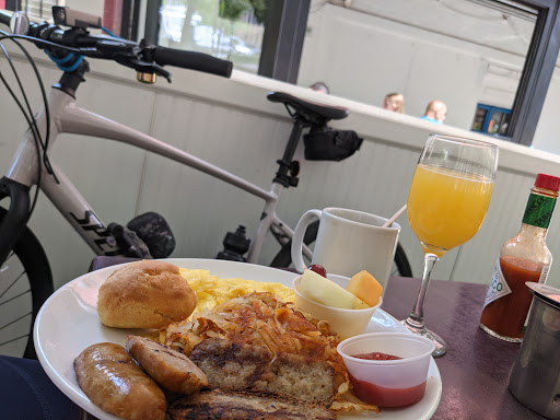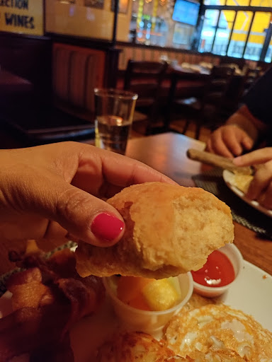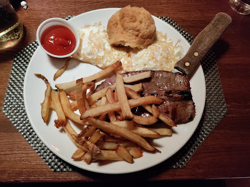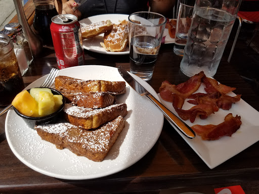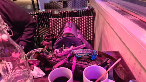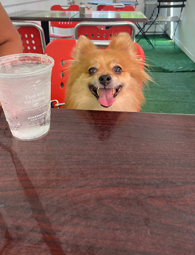 After seeing the Barking Dog on a list of the best dog friendly restaurants, we decided to try the brunch with our four legged friend. After seeing how packed the outside part was, we knew it had to be good. We were also no where near the only people with a furry friend as the patio was crawling with fidos. The manager did a great job of expediting tables, moving around chairs and making new tables, and we were quickly seated. We ordered the pitcher of red sangria as we perused the brunch menu. It is largely regular American brunch faire, from pancakes to steak and eggs. Our sangria was very good, nice and sweet and refreshing on a warm spring day. The chunks of apples and orange in it were also a nice touch. I chose the steak and eggs while my wife had the Barking Dog special, 3 eggs, bacon, sausage, and hash browns. My steak was actually excellently cooked to perfection. The fries it came with were also incredible, Im not sure if it was the oil or the potatoes, but something about them really stood out. The eggs were also good, and went well with the steak as expected. The biscuits both came with were good but dry, though the eggs helped with that. My wifes eggs and hashbrowns were good, but not outstanding, she described them as "average brunch food". The bacon was pretty good though (I may have stolen some when she wasnt looking). Our little Hershey wasnt left out while we ate as our waiter brought him water and a milk bone right after our food came. He also made some friends at the next table while we were distracted with the food. Service was excellent. We were seated very quickly though the place was packed and our waiter, though covering all the outside tables, was constantly checking on us and our dog. He was super friendly and even chatted with us about our dog. I can see why several of the other patrons with dogs told us how much they loved the place and that they were regulars. The prices were also fantastic for the locale. We really liked the barking dog and Hershey loved it. I think well be back soon.