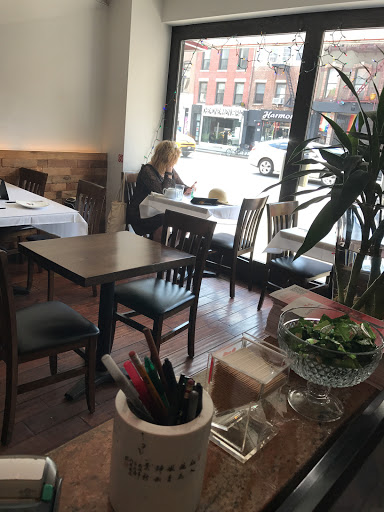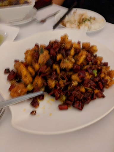 This fiery spicy restaurant is a bit unexpected along the blandness 8th Ave row in catering to Chelsea boys. The restaurant was revamped with a more ‘modern’ interior and fine diningesque with table cloth and napkins. The extensive menu with choices of pig intestines and frog you might only find in Chinatown that might cater more to the Asians than the Chelsea population. The pork soup dumplings are good but skin is slight thicker than the more crafted one you might find. You have to ask for the tea which doesn’t come standard per table. We started with the mung bean noodles in chili sauce. It less noodle but chucks of agar like in a tart chili sauce. The pork dumplings were quite good but the ‘soup’ inside was a bit inconsistent. My friend bit into one where the broth came out like a burst dike. The chicken in chili looks spicy with all the chili peppers but don’t let that scare you. It is all looks. The chicken fried nicely and tender. The peppers added some heat but more in flavor. Grand Sichuan Eastern is a good pick if not wanting to head to Chinatown for some decent food. The service is much more pleasant and slightly more upscale than you get but the prices seems reasonable.