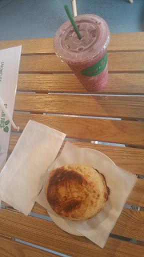 Very "healthy & Organic"...felt comfortable and cozy. Small tight spot. Delicious smoothies, juices and essence water! Not a fan of the sandwiches, but thats because I cant stand eating hot sandwiches ( i cant stand the smell of melting cheese and hot tomatoes) ...only cold. Besides that , love it and theyre very friendly & welcoming.