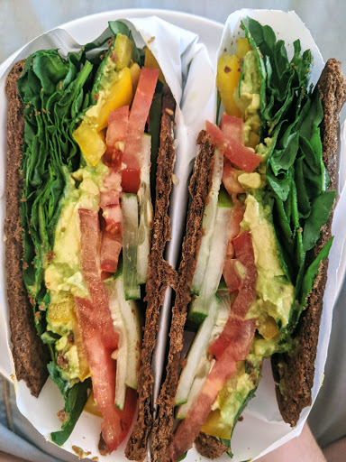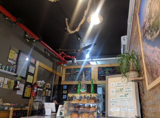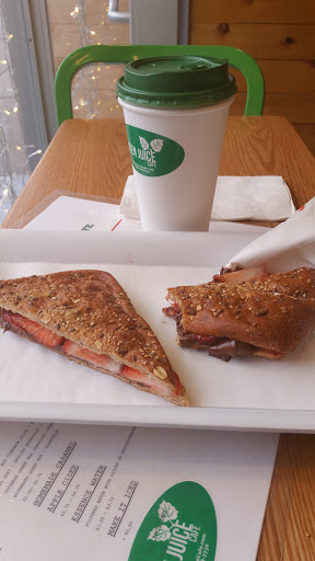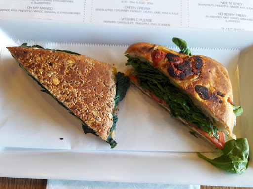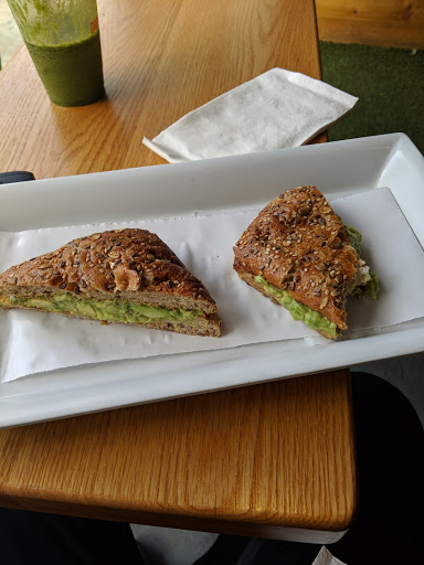 Had the Green Dream Juice- pretty good. Had the Toasty Pesto Sandwich - that was real real good. The pumpernickel bread didnt have caraway seeds and was thin and toasty just right... Loaded with fresh spinach leaves. Friendly staff.