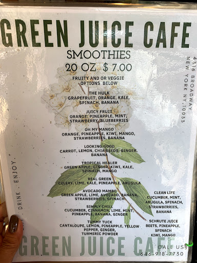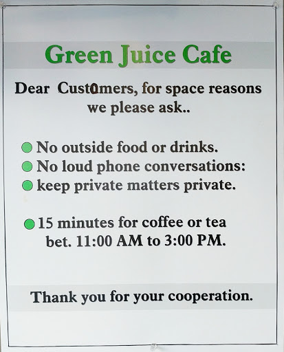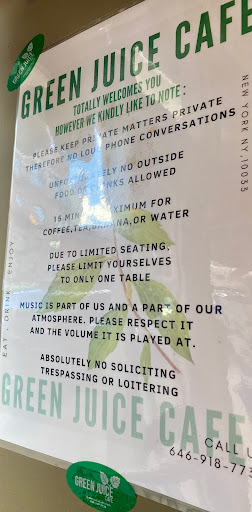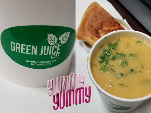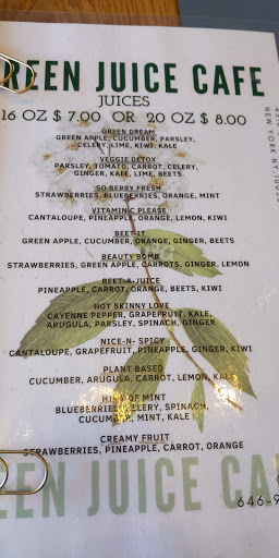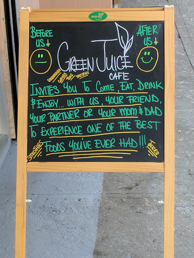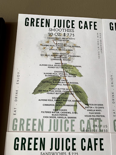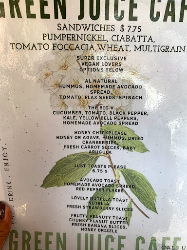 I love Green Juice Cafe! Ever since I walked in the doors back in fall of 2016, I have been returning here for the best juices in the neighborhood. Friendly staff, fresh, healthy food (my favorite is the vegan Honey Chickplease sandwich) and thoughtful, attentive owner, Leo. Chill ambiance (though packed during lunch time!) with cool music - all good vibes! ✨✨✨