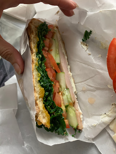 I enjoyed a delicious fresh sandwich at a pretty reasonable price. Lots of veggie friendly options on the menu. Hooray for pumpernickel as a bread option. I didnt try the juices or smoothies, but those seemed to be popular choices among other patrons. Friendly service. Not a lot of seating, so you might have to take it to go during busy times.