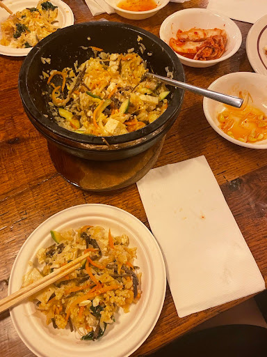 This place is good for accomodating a large group, and since business wasnt busy, they were in no hurry to kick us out. The bulgogi that I ordered was a bit soggy and piecy; it reminded me more of ground beef than actual slices of beef. The fried dumplings appeared over-fried as well. There may be plenty of space here, but the food has a ways to go.