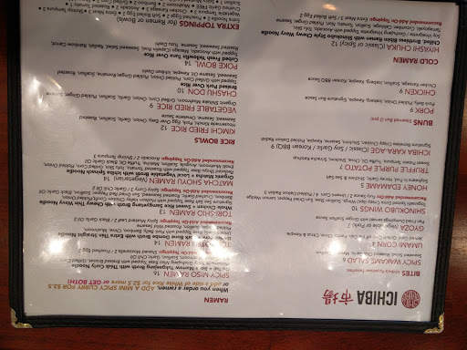 This is my first time at Ichiba and overall the food was good! I came here with a group of friends so I was able to try a good amount of dishes :) we ordered duck bun, poke bowl, spicy miso ramen, kimchi fried rice, and the chasu don ( braised pork over rice) My F-A-V-O-R-I-T-E dish was the spicy miso ramen. ( make sure you get tamago * poached egg* & spicy takana on the side!!!) The soup was so good ---its not the typical "miso" flavor.. its ox tail and bone marrow broth which i really liked~~~ The noodles were cooked perfectly too~~ and they actually give you a generous amount of noodles. Ive been to many other ramen places where they dont give "enough" noodles but here was the right amount * Oh! and if you are a FANNN of siracha , they have this other yellow siracha sauce that ive never seen before and its kinda a game changer~~ you must try it!