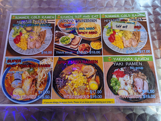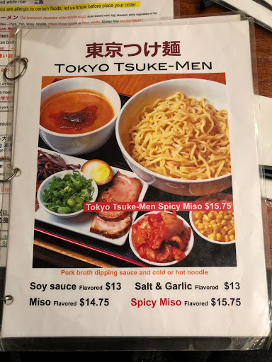 まずかった。 正直、今までの人生の中でびっくりするほど、一番まずいラーメンだった。 友達は、家に着いてから、下痢になった。三人で行って、つけ麺、タンメン、醤油トンコツラーメン、全部まずかった。 ラーメン三つ、ビール一本、餃子一つで、チップ込みで$70。 そこに、行くまで、タクシーで往復$40. 正直、お金捨てた気分になった。 美味しくなかったから、チップは、15%にしようと、思ってたのに、会計の伝票には、チップ18%と、20% が、勝手に計算されていて、わざわざ、青いマーカーで、線引きされていて、強制的に、チップ18%~20%徴収。 もう、二度と行くことはないし、人にも、進めないし、SNSで、アップしたら、同じようなことを言ってる人が何人もいた。 オーランドにある田舎のラーメン屋のほうが、全然美味しかった!