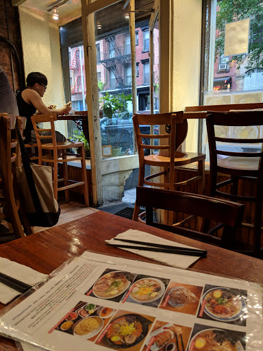 I dont know how to feel about this. Maybe because I was biased over the wait of an hour+ for at best mediocre ramen in Manhattan. There are far better places surrounding the area. I rather hop on the subway to go to my safe haven - Ippudo or walk back to Ivans Ramen Shop to try. The place is extremely tiny like Totto Ramen, but above ground. There are customers trying to wait INSIDE the restaurant. I just wished they waited outside or the bar across the street. My cousins and my friend ordered the "Basic" while my other friend and I tried out the spicy miso ramen. For the basic, there is much to be desired. There was something off about the broth that day because it tasted like bad pork went into the broth. I definitely taste the garlic, but I wished it overpowered the bad pork based. The noodle are pretty good and bouncy. I would highly recommend getting the Spicy Miso Ramen because it was as close as youre going to decent rament, but lets get to the real issue I have with this place. The seasoned egg or the shoyu tamago as its called. The york is cooked all the way. They didnt time it correctly nor did they care to seasoned it correctly. They only marinated for possible 12 hours so its a light brown color. I dont ever think I can live with that and nor will I be coming back because of this. I take my shoyu tamago very seriously. If youre in the area, you should give it a whirl, but this isnt a place you go out of your way to try.
