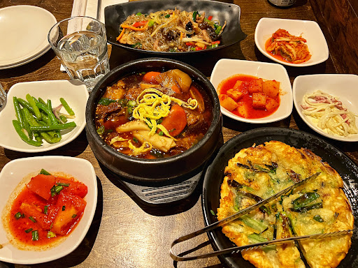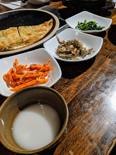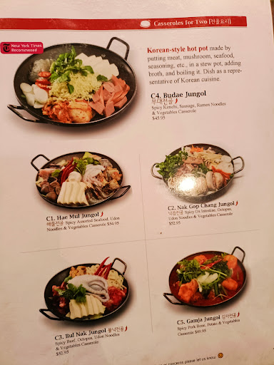 I had ever eat so bad Korea restaurant in my life,BBQ,seafood pancake,ginseng chicken soup,even Bibimbap were worst and service was bad,very rude。 從來沒吃過這麼難吃的韓國料理,第一海鮮煎餅料很少,只吃到幾個蝦與花枝,蔥很多,我們以為點到蔥油餅《蔥油餅還好吃一些》,cp值低;第二點 烤五花肉腥味較重,烤不脆《廚房烤的》,因為我們單點一道烤肉,必須由廚房烤;第三點最失望就是人參雞湯,湯頭非常淡就像喝水,符合外國人口味?!肉也偏柴,感覺不出是整只雞;第四點石鍋拌飯,石鍋不夠熱,做不出焦脆感,配菜少到不行再加上手指大小的肉沫。 整體而言,如果不是在紐約吃到,我真的不知道原來有這麼難吃的韓國餐廳。