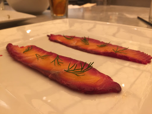 We placed a walk-up order at the Cheese & Charcuterie Station and enjoyed our "pick 3 & 3". The cheeses and meats were all cut fresh in front of us, and the flavors were perfect. The board was served with fresh green and black olive tapenades, as well as a powerful whole fig concoction. The environment was a little chaotic, but the basic tray was phenomenal. If youre not drinking alcohol in the food hall, try the GUS (Grown up soda) in the refrigerated drinks section. They are delicious, not-too-sweet, and delightfully refreshing!