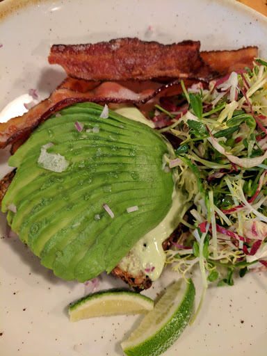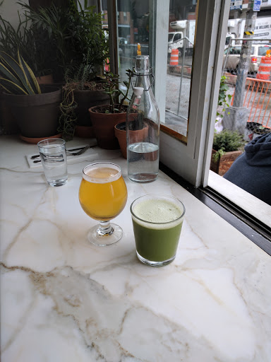 Went for breakfast and sat at the bar. Ambience is great and Jeff who was working behind the bar was great. We had the buckwheat pancakes which were pretty darn good considering they are gluten free and then some eggs on the side which were delish. Also had some coffee which was unusually flavorful and the green juice which was gingery and vibrant.