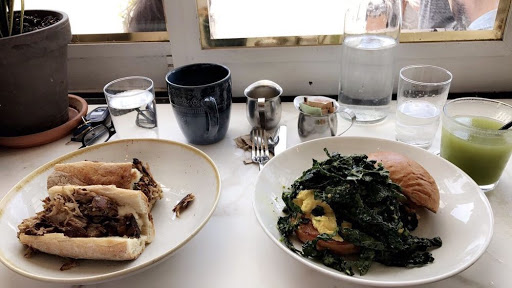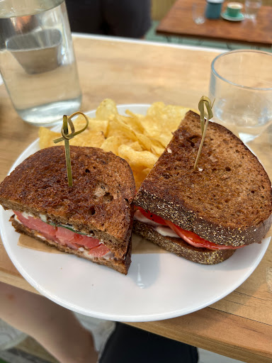 Really good brunch. The menu is creative consisting of sandwiches, salads and tartines. The space is small but manageable. All around a good, quiet enjoyable experience.