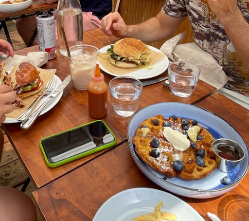 Homey feel with delicious green juices, breakfast sandwiches (Good morning sunshine hit the spot) and endless yummy coffee. Shared the buttermilk pancakes with the table- highly recommend. Will be back!