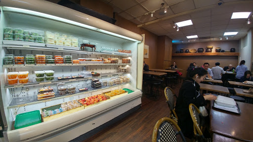 A unique eating experience in K-town. Its set up like a cafeteria style where you serve yourself and then pay by weight. Theres a lot of good quality Korean food to choose from as well as a selection of soju and maekgeolli on the side. Most of the food is just good though, and I wouldnt say anything was spectacular. I would recommend this place if youre looking for a quick bite and want some flexibility with options. If youre looking for a full meal, there are definitely better places along the same street, however. During the busy times (like Friday or Saturday night) you might have difficulty finding a seat and will need to stake out a table from some of the groups just sitting around.
