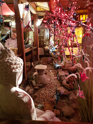 Let me begin with stating that I was rudely "welcomed" by a tall middle aged asian lady with short hair; Ms. Sourpuss frowned all the way to our table. The idea of the indoor village is fantastic, but there are holes in the ceiling, patched over. There is dust and wires all over the walls and ceiling. After being seated, my family and I realized how hot is was inside; we actually broke into a sweat; talk about cheap owner.... I dont know how they make sushi in a hot environment, doesnt that lead to food poisoning? The servers were sweating a lot, which is gross. Received our drinks, basically the whole cup was filled with Ice, the drink just filled between the spaces between the ice. So cheap with the drinks. No refills! $2.00 for a coke in a small glass, +$2.00 for every refill. Drinks were poorly made, blue hawaiian was green.... ? Pineapple was brown, cherry was wrinkly.... Then, a waiter came, didnt even introduce himself, cuts me off as Im asking a question about a dish. Not to forget, our chinese server had his underwear coming out the side his pants. He was also sweating profusely. I could see him on his phone in the back room where the rest of the servers were folding napkins. He would stand in the back room and look at other tables making fun of other customers. Snickering with the other servers in the back room. The two sushi guys were eyeing women walking in and laughing. Wonder what they were talking about while they were staring at my girlfriends bottom. Very rude, no tact, no customer service, food was good though; but waaaaaaaaay over priced. The pictures of food they have on their website isnt even of their food!!!! The "rainfall lounge" is a sad joke. Yada yada yada yada, we finished our meals, and our server brought out hot teas, and a coffee.... I went to pour the coffee from the french press into the black cup, and what crawls over my hand from inside of the cup, a small Cockroach. That was absolutely disgusting. I asked for another cup when the waiter walked past, and he rudely responds, "Whats wrong with the glass you had??" I said there was a roach in it, he then apologizes, and takes the cup, talking to his other Philipino partner in their language and shaking his head while pointing his fingers at us like we were the ones who did it. I just paid and left. I will never return. I strongly recommend that you avoid this outdated horror.