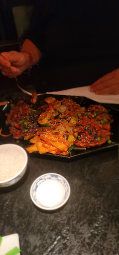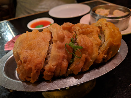 This is a great treating restaurant for people looking for a variety of food. My husband and I went on a Sunday evening, arriving around 5pm. There was a fair number of families dining, but we were able to be seated right away. It was slightly noisy because we were seated next to a large party; usually the sound is fairly mellow otherwise. Service: All of the staff we encountered were pleasant and smiling. Orders were taken promptly, and drinks and food made their way to us in a reasonable time. Dishes were almost magically removed as soon as they became empty. We also received complimentary plum wine with the check, which was a nice touch, but Im not sure if thats standard. Food: The ling yung (sweet lotus buns) are a great appetizer for someone who likes sweets. The orange duck was tasty, as was the chocolate tart. My husband enjoyed his egg roll, hot and sour soup, and bulgogi. Drink: The bourbon sour was good, although on the sweet side for a bourbon based beverage. The pear blossom (which I ordered because I like lychee) wasnt as delicious, but I still enjoyed the lychee fruit. My dessert came with complimentary tea, which was enjoyable. We received two tiny glasses of plum wine with the check. Plum wine is very sweet, and a personal favorite, so this was great!
