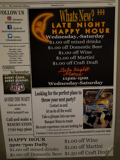Never had been to this part of greater Buffalo before. Wanted to have a night out with my wife and do some shopping in the little town then went to dinner at Dockside. Place is very nice, food was good. We had the Haddock Fish fry and also broiled fish dinner. Both were very good. Service was fine and prices were in line with any restaurant. Would recommend to others.