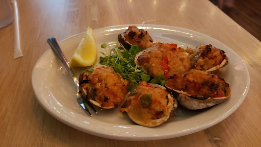 We are literally pulling out of the parking lot now. Shelby was our server. Some of the worst service we have ever gotten. She never introduced herself, first of all, and we barely saw her the entire meal. Service was very slow... And we waited at least 7 minutes just for her to take our card to pay. We couldnt leave fast enough. Not to mention that there were at least 3 workers just hanging out at the hostess station the entire time. Now to the food: we ordered stuffed baked clams for an appetizer. Could not find any clam meat whatsoever. Way too much breading. And was bland. I ordered the Lobster BLT which was 17$ way overpriced. The lobster was overcooked, and had no flavor. No salt or pepper. The avocado was brown and there was no corn aoli as promised on the menu. My husband ordered the fish fry. It was oily, the potato salad had no seasoning on it and the cole slaw was full of raw onions. Will never return. Way overpriced and service was terrible. Not to mention that someone on the outside deck on the restaurant was smoking a cigarette and no one said anything.
