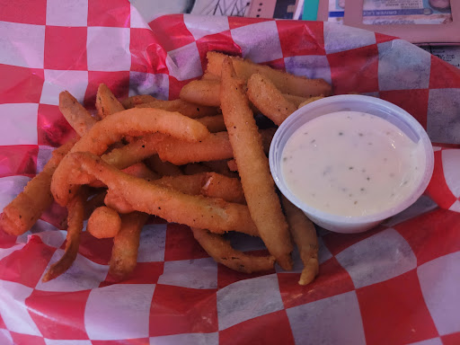 Our experience was during the weekend of the pirate events, so most people ate near the car show and carnival area. There was two to three people at the bar and a party of eight at the tables and us. I didnt understand why it took almost an hour to get our food. My wifes fish fry came out to us and it was burned and almost charred in some spots. The manager did however remove The fish fry from The bill. The food was ok, nothing great. I hate to give a bad review because this place was highly recommended by others. Maybe we were just unlucky