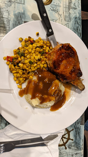 Stopped by on a whim during a drive through Olcott. Only had drinks, but plan on returning for music and food during Jazz Weekend. Place is casual with a nautical theme and lots of local memorabilia. Pirate themed stuff abounds. Fresh looking dining area and patio with lots of light and views of the town streets and lake area. Bar area is dimmer and more worn, but clean and tidy. Restrooms in good repair and clean. Long ramp for handicapped access along side of building into bar area, but owner happy to accommodate front entry if required. Friendly staff. Lots of locals eating and chatting in dining area on the day I stopped. Based on positive first impressions, Ill return soon.