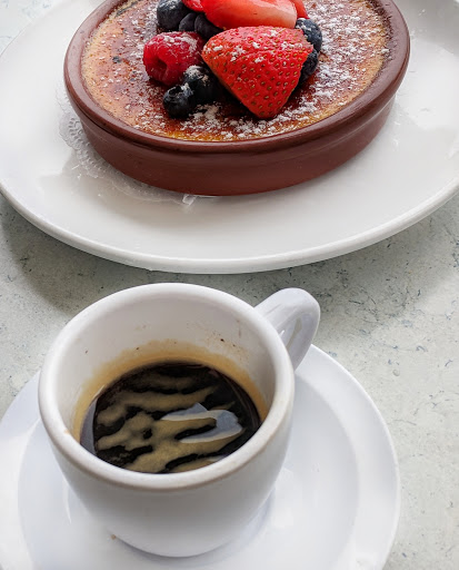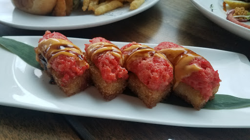 First off, the food was good, drinks were good, view is incredible, and the setting is nice. I will probably go back at some point. I liked my waiter - he was enthusiastic and (mostly) attentive, at least once the restaurant started clearing out a little. However, the service took about an hour from seating just to put out our drinks and we were there for about 2.5 hours in total. I had to ask for the waiter to be sent over, which they responded to pretty quickly so that was good. They have TVs in the intimate dining area which takes away from conversation as it was a constant stimulation and distraction for the others in our group who faced them. The outdoor dining looked much better. Inside, they have these tiles that make me feel like Im eating in a large bathroom, so that was weird. My friend said it felt like the kitchen was spilling out into the restaurant (in a good way). They also have these really ugly booths that none of us really understood. Lastly, everything was pricey. I dont want to say outrageous, but definitely too much. Drinks were $10+ and barely alcoholic, which I guess can be a good thing, but still overpriced. Little note, the bathroom is in the front near the entrance which I thought was a little strange, but nothing wrong with it of course. The place can definitely improve and its just getting into its groove.