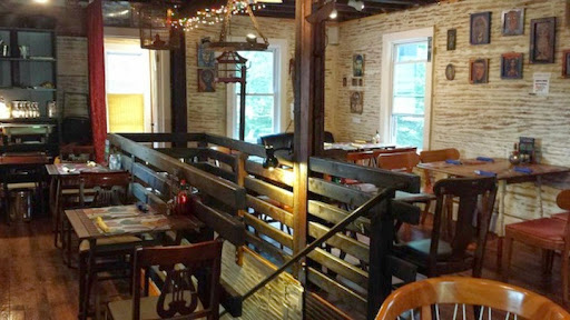we LOVE this place, cozy, friendly staff, friendly clients, intimate space -amazing food and reasonable prices, from the soups to salads to interesting mix of entrees and wonderful desserts, old farmhouse 2 floors of cuteness, without any kitsch - always good to call in advance, its has a good rep w/weekenders AND locals . also has a B+B next door which i havent seen yet [we have a farmhouse nearby] Also has interesting photography and art on the walls. my favs: thai pulled pork sandwich, some great dumplings russian /eastern euro style, i havent tried the dish "Putins Tears" but i love the name -oh and ganache and apple puff tarts.. and there is a gorgeous river rolling behind it, stone bridge and outdoor cafe tables and lanterns, in + out an all around great place