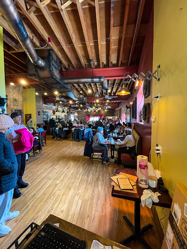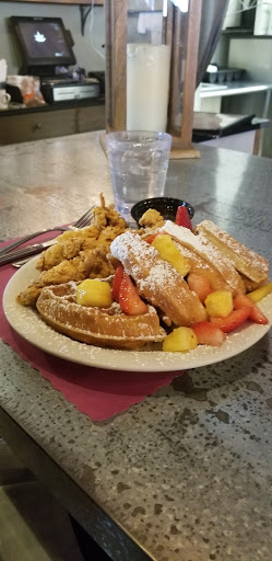 Three of us went for lunch, about a 15-minute wait. That was expected as this place is new and not very big. Food was delicious; our group had a burger, the chicken and waffles and grilled cheese. Big mugs for terrific coffee. Staff was very friendly. Only complaint -- and this is a priority -- is the music is too loud. The acoustics arent great to begin with and the loud music makes it difficult to carry on a conversation. If they lowered the volume of the music, you could still hear it, but at the same time enjoy the people youre having a meal with without shouting to each other.