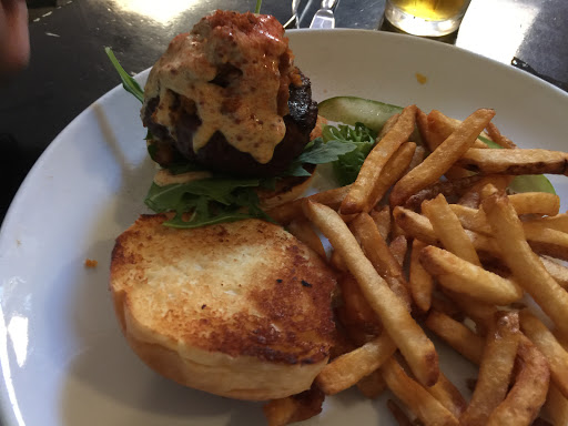 The waitress was attentive and pleasant. We ordered 2 beers and they were great! My husband ordered the big bird burger(its on the small side for 1/2 lb). It was cooked perfectly. He asked for medium well. It was seasoned to perfection. Now the bad: we waited 50 mins for our food. I ordered the BBQ pulled pork sandwich. Im still looking for the pork!!! It was all shredded cabbage and carrots. The bread was super super toasted and hard. Both our fries were over cooked. Now the decor. I understand the Peekskill eclectic look, but the place needs help! A coat of paint. There are ways to give an eclectic look without looking dingy. Draft beer sizes need a reality check. Seriously!!! All in all our experience wasnt the best. 2 beers, a burger and a sandwich came to $52 +tip $65. I dont think well be coming back :(