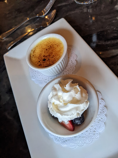 food was okay. I was expecting more from eating at its sister restaurant. slightly under seasoned, next door was much better along with much better service. my wife asked for her dinner to be wrapped to go, yet we never got it. I got the sorbet for dessert and the raspberries had mold on it. I couldnt tell the server because we never saw him for the rest of the night. he just disappeared.. the manager came over and dropped off our check.