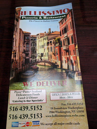 Best pizza in Port Washington and having lived in Brooklyn for over 30 years I can honestly say this pizza stands out even compared to pizza in the boroughs. Many other delicious items of the menu aside from pizza . Our family of 4 has tried their pasta plates, salads, Paninis, wraps, chicken plates, heroes etc and weve never been disappointed. Something for everyone. You can dine in and should ! The place is spacious, clean and service is fast. The employees (maybe owners work too) are sooo nice -especially our favorite Matty! My 10 & 7 year old boys are very welcome & enjoy themselves ..plus they love the food too. Go to Bellissimo theyre the best in Port Washington by far.